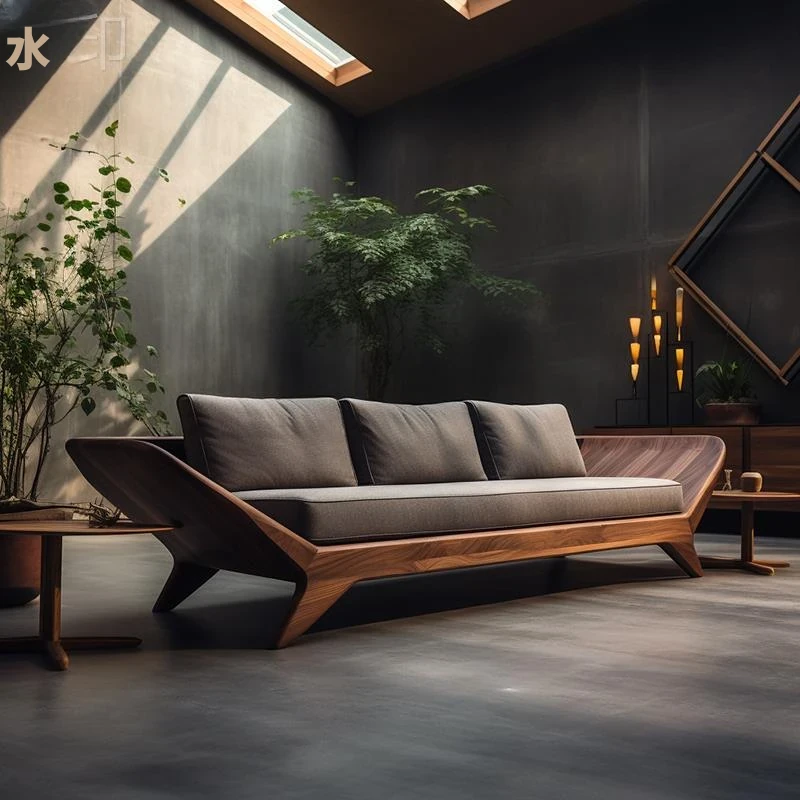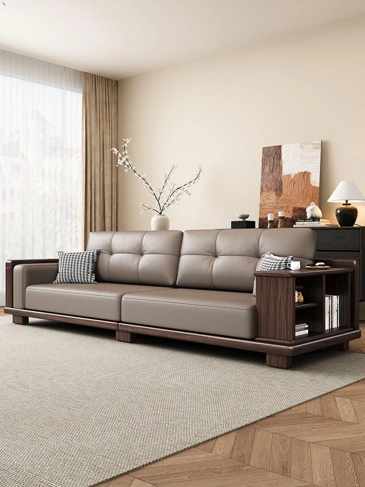 ウォールナット材のリビング用ソファー|新中式デザインの実木ソファーセット|モダンでシンプルなコーナー収納家具|広いお部屋にもぴったり!快適な空間を演出します!