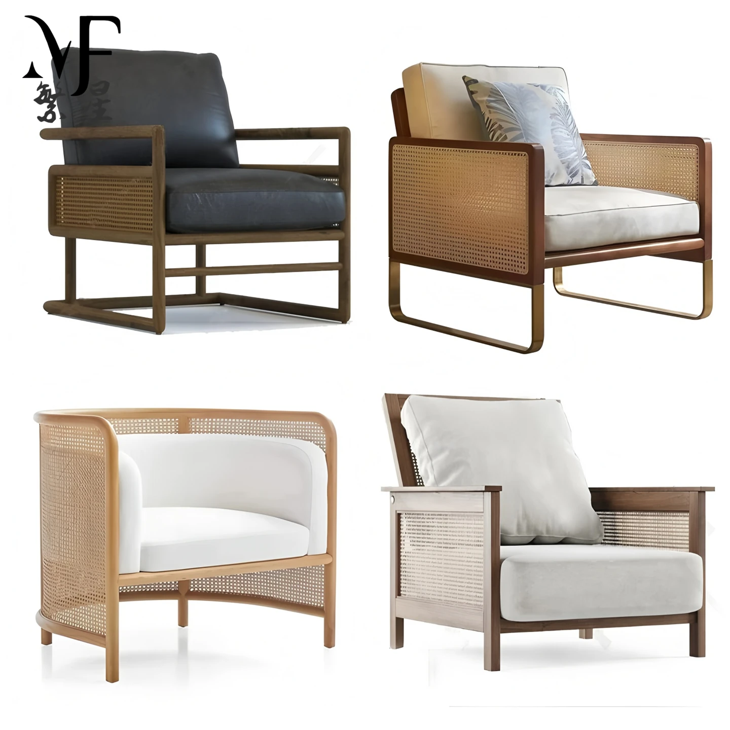 中華風のリラックスチェア、ホテル・民宿向け、販売所・クラブ用の接客ソファ、北欧スタイルのラタン編みと無垢材使用、優雅で快適な座り心地をお楽しみください!