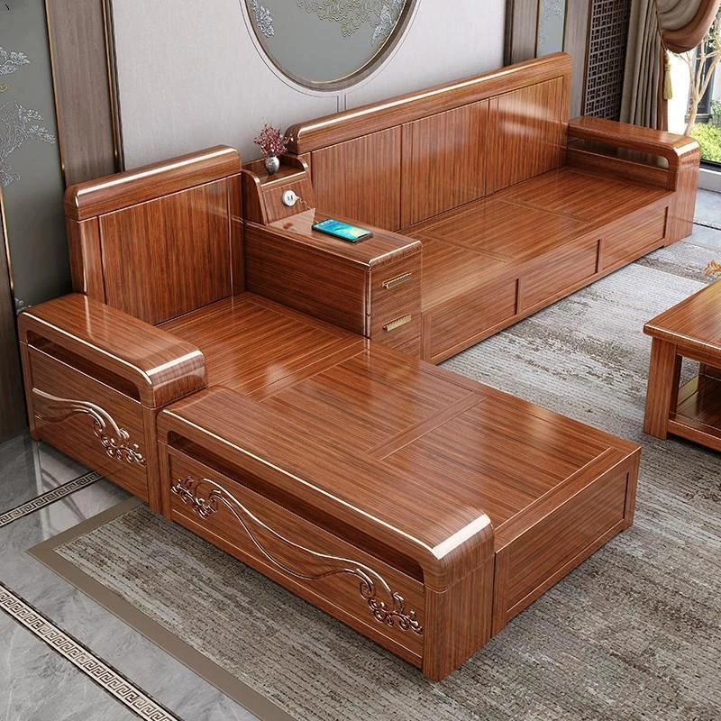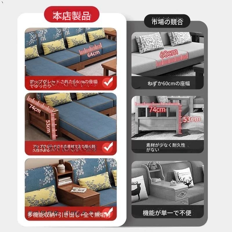 ウォールナット無垢材ソファー|家庭用リビング家具セット|狭小住宅にも最適|冬も夏も快適|収納機能付き|モダン中式デザインのソファーで、スタイリッシュな空間を演出!