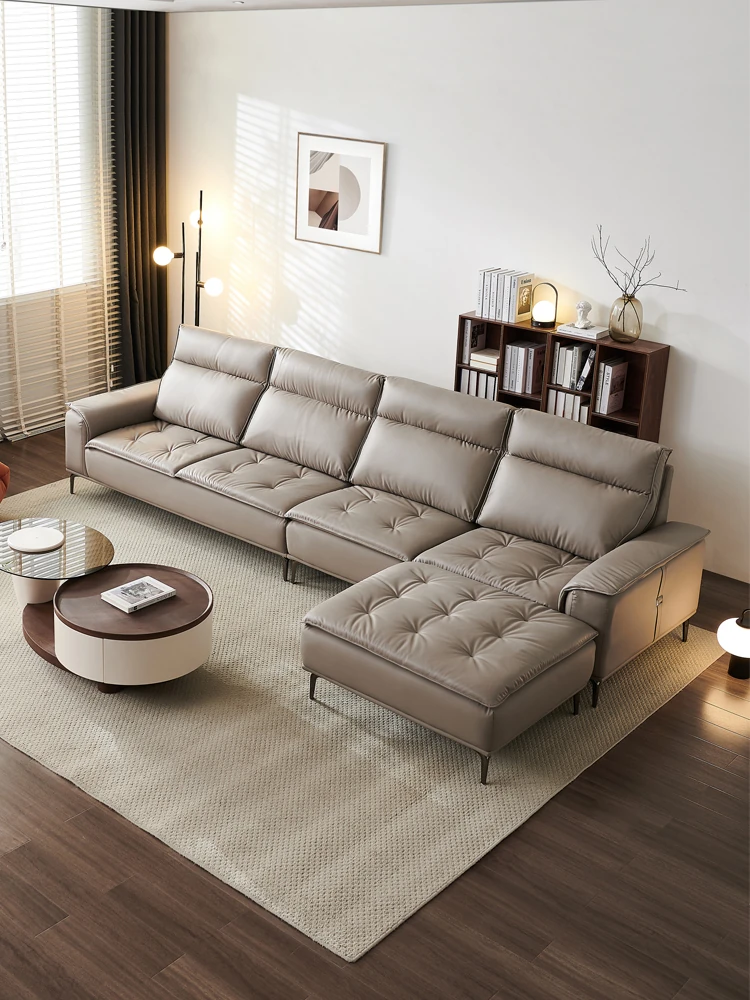 イタリアンミニマリズムの贅沢な本革&ファブリックソファ - 小型リビングに最適なモダンデザインのダブル&トリプルシート!シンプルで洗練されたスタイルで、おしゃれな空間を演出します。