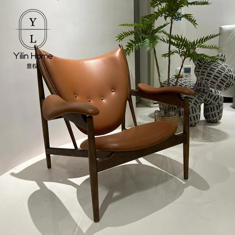 イタリア高級北米ブラックウォールナットのエルクチェアー|別荘デザインのバルコニーにぴったりなリラックス一人掛けソファ椅子