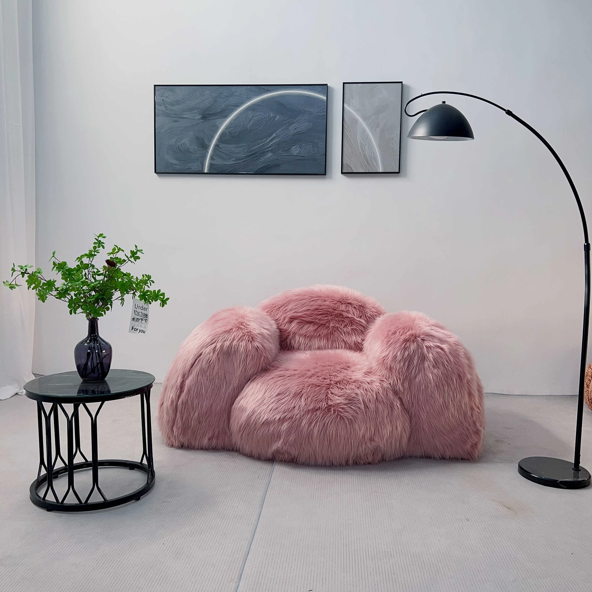 ラグジュアリー感漂うトレンド雪だるまモダン長毛プラッシュピンクタタミソファ、ビューティーサロンや服飾店の受付にぴったりなリラックス単人用チェア!快適さとおしゃれを両立させた理想のアイテムです。