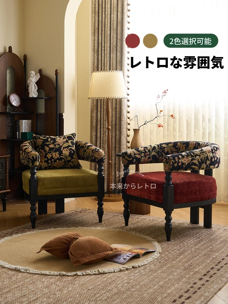 レトロな魅力満載!赤ウ椅子 フレンチスタイルのヴィンテージ一人掛けソファー リビングルームにぴったりのリラックスチェア 使い心地抜群の一人用椅子