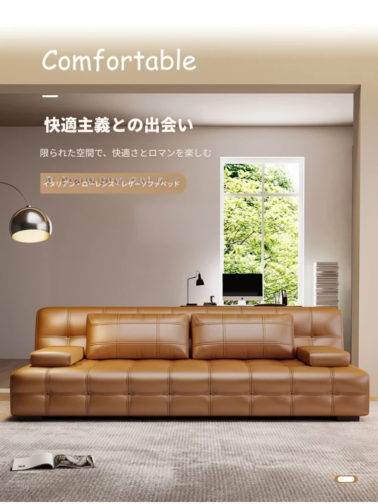 2024年新作!モダンでシンプルなデザインの2WAY折りたたみソファベッド。リビングルームにぴったりな宇宙船のような贅沢な電動機能付き本革ソファ。快適さとスタイルを兼ね備えた一品!
