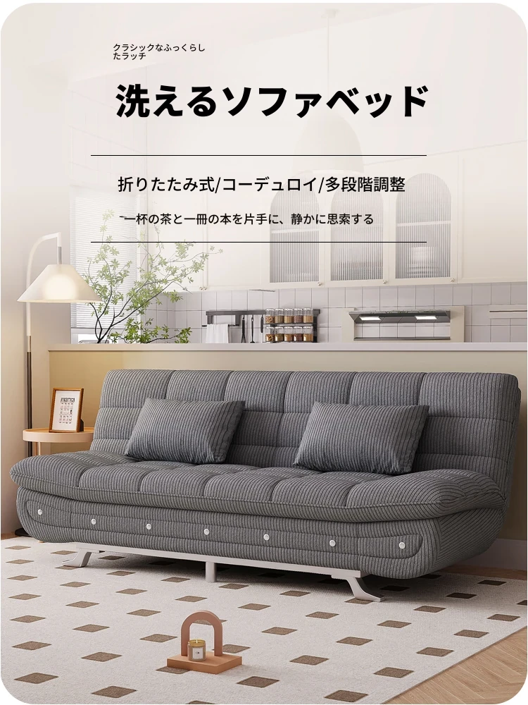 香港送料無料!洗濯不要のテクノロジー布製ソファ、折りたたみ可能な2WAYデザイン。小型スペースにもぴったりな北欧風ミニマリスト・モダンラグジュアリーソファ。快適なリビング空間を実現!