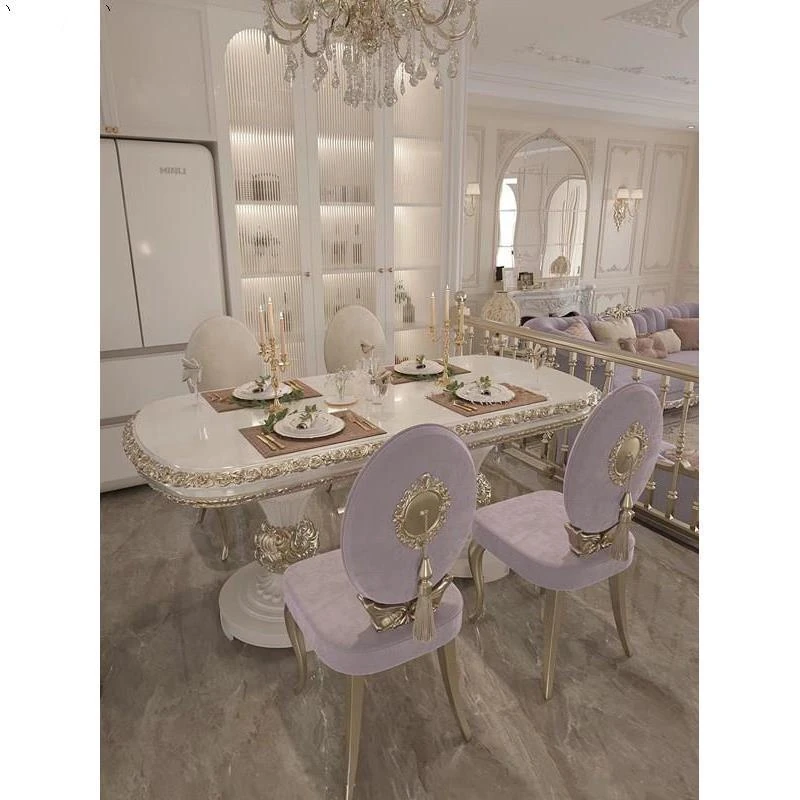 フランス宮廷スタイルの高級オーク材オーバル彫刻ダイニングテーブル - モダンでシンプルなリビング家具セット、快適な多人数用チェア付き!あなたの食卓を豪華に演出します!
