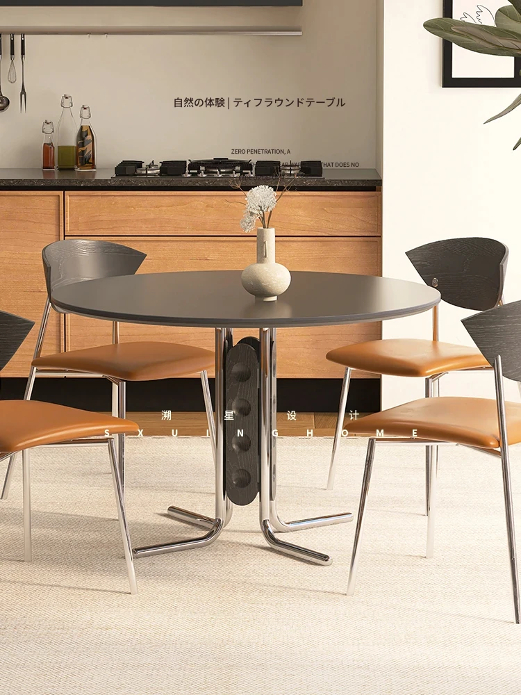 新作の岩板製ダイニングテーブル&チェアセット!実木仕上げの小型丸テーブルで、バウハウスとフレンチヴィンテージの魅力を融合。小さなお部屋にもぴったりなスタイリッシュなデザインで、家族や友人との楽しいひとときを演出します!
