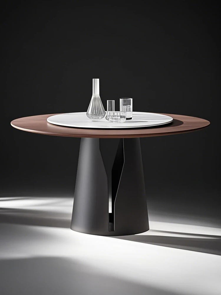 2025年新作!小型家用・実木製・岩板ダイニングテーブルセット - 丸型・電磁調理器対応・回転式トレイ付き!ホテルにも最適な洗練されたデザインで、狭いスペースでもおしゃれに楽しめます!
