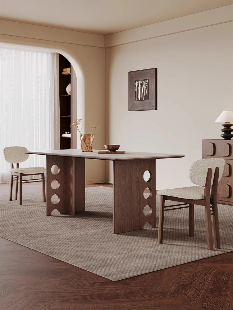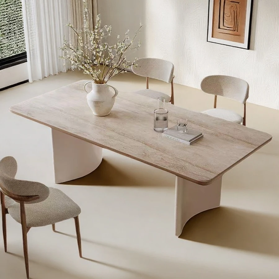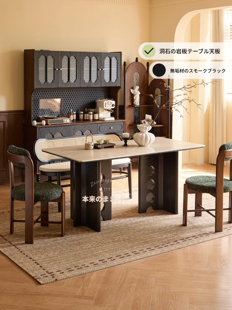 侘寂風の洞石スタイルのハーフラウンドデザイン、クリエイティブなフレンチビンテージアイランドテーブルセット!おしゃれでユニークなダイニング空間を演出します。家庭用にぴったりな一品です!