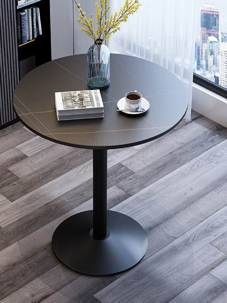 高級感溢れる天然石製ミニラウンドテーブル - シンプルでスタイリッシュなデザイン、カフェやティールーム、リラックスしたバルコニーに最適!家庭用にもぴったりな金属製の円形テーブル。