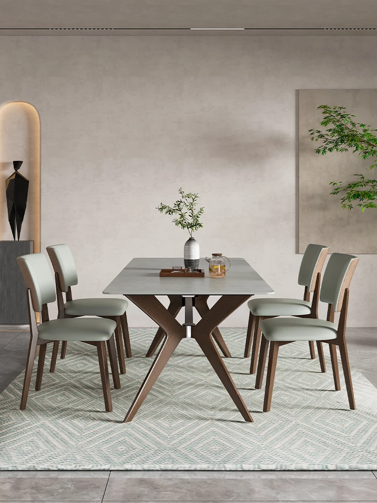 イタリア輸入グレー石板ダイニングテーブル - ミニマルでラグジュアリーなデザイン!実木製の長方形テーブルと椅子のセット、小規模な家庭にもぴったり。おしゃれな空間を演出し、特別なひとときをお届けします。