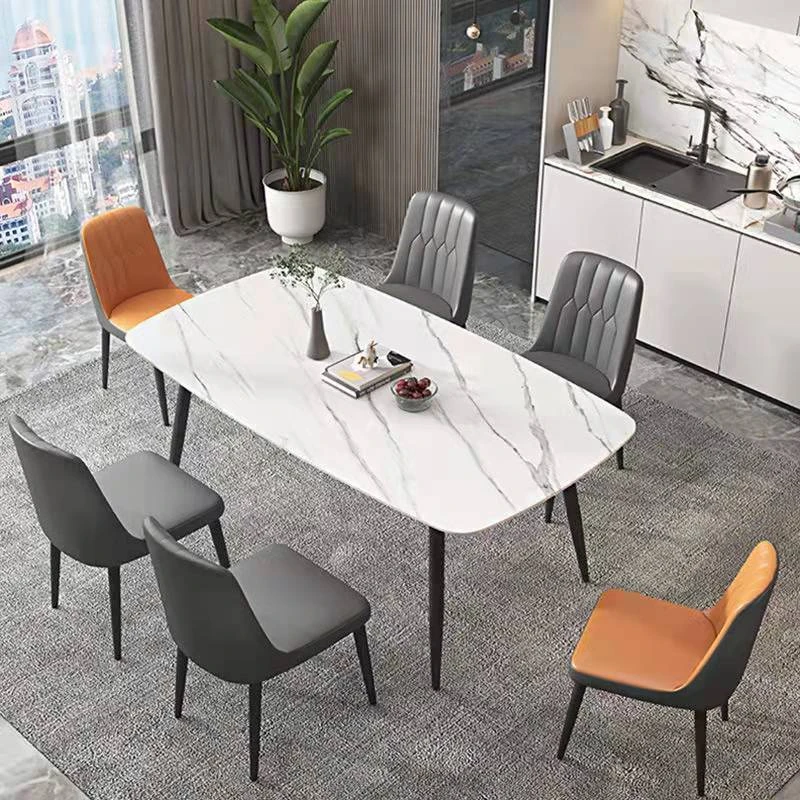 2025年新作!洗練された大理石調ダイニングテーブルセット - 高級感あふれる長方形テーブルで、リビングやダイニングにぴったり!小型住宅にも最適なスタイリッシュなデザイン。