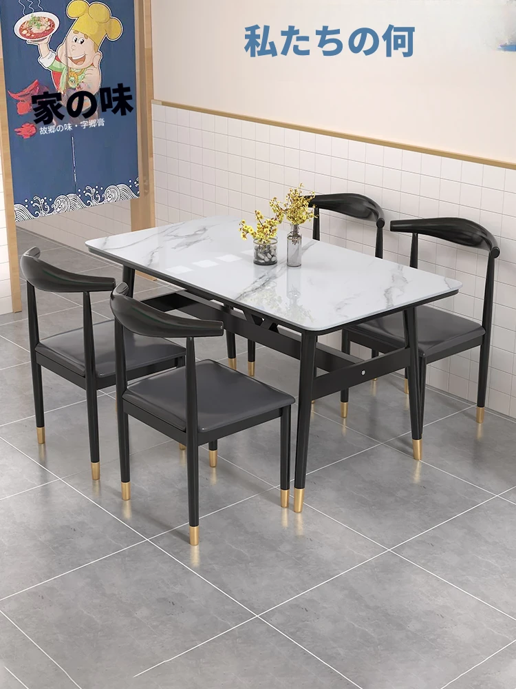 イタリアンラグジュアリー岩板ダイニングテーブルセット - モダンでシンプルなデザイン、小さな部屋にもぴったりの長方形テーブルと椅子の組み合わせで、食事の時間を特別なひとときに演出します。