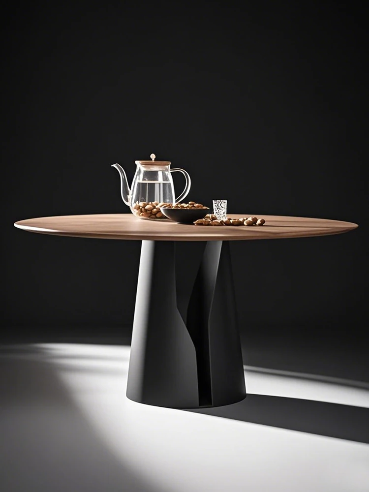 天然木材と大理石の融合!美しい円形デザインの岩板ダイニングテーブル。家族や友人との食事にぴったりな高品質なテーブル。おしゃれなインテリアを演出する、丈夫で長持ちする食卓です。