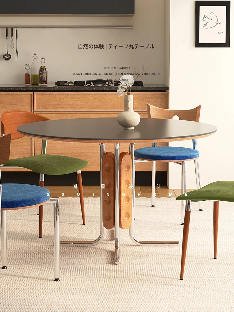 新登場!ヴィンテージスタイルの木製ラウンドテーブル - おしゃれな小型住宅にぴったりなフランス風の新作岩板ダイニングテーブル。お客様との特別なひとときを演出する、優雅で実用的なデザインです!