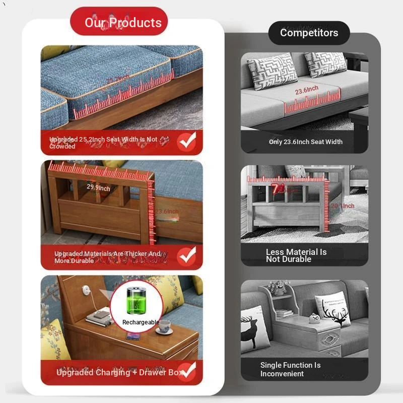 Modern Chinese Style Solid Wood Sofa Set for Living Room - Versatile Drawer Sofa and Coffee Table Combo for All Seasons, Ideal for Small and Large Spaces