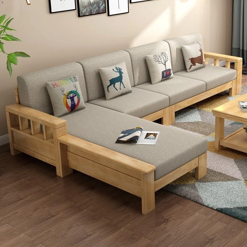 Modern Chinese Style Solid Wood Sofa Set for Living Room - All Solid Wood Furniture with Storage, Minimalist Design for Small Spaces, Natural Wood Sofa
