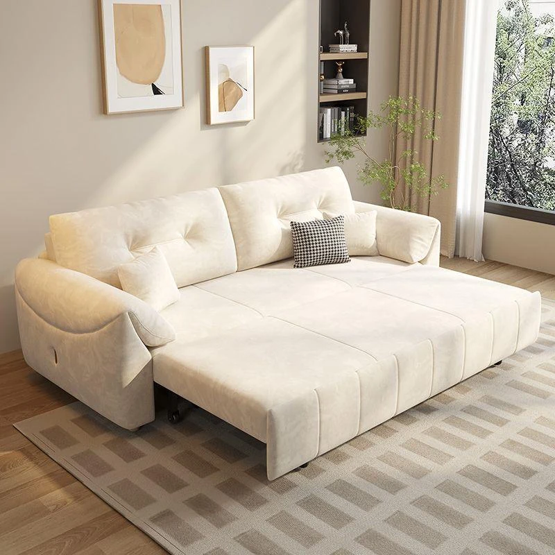 Tech Velvet Sofa Bed - Foldable 2-in-1 for Small Spaces, Creamy Style with Storage - Great Deal on Double and Single Use Bed