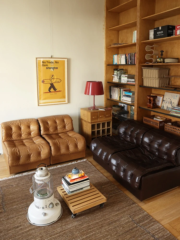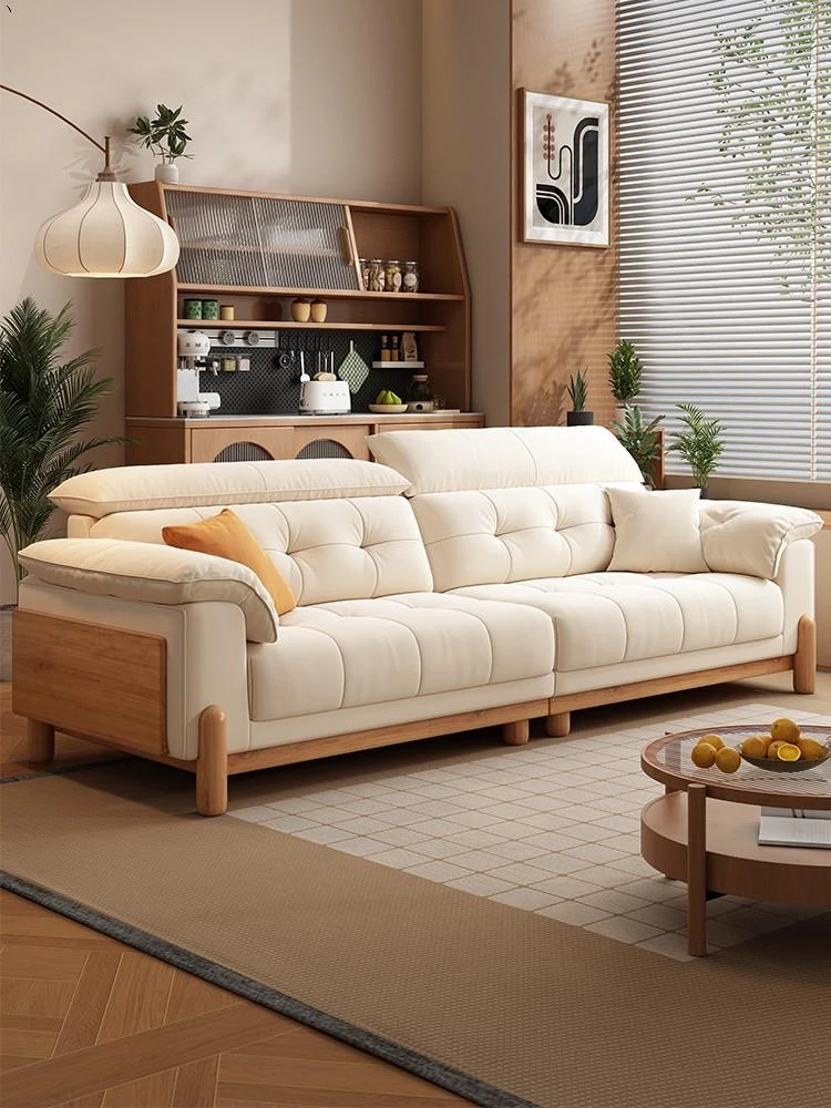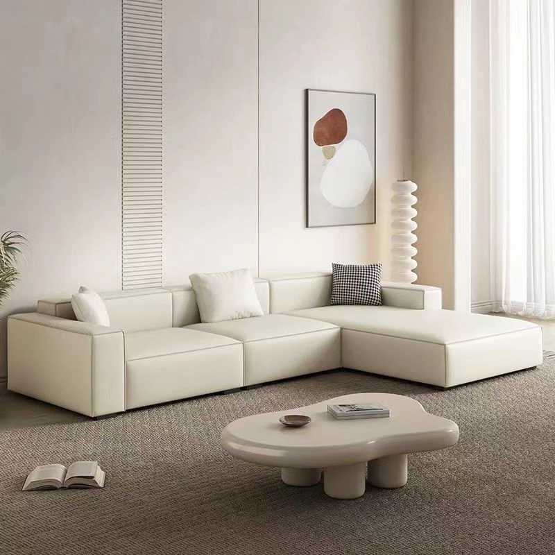Italian Minimalist Style New Sofa - Wabi-Sabi Design for Small Spaces, Cat-Proof Leather, Trendy Block Sofa for Living Room
