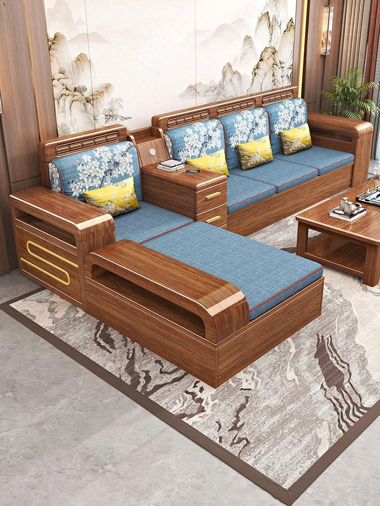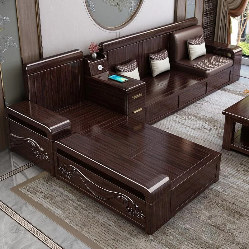 New Chinese Style Solid Wood Sofa Set - Versatile Corner Storage Sofa for All Seasons, Minimalist Modern Design, Perfect for Your Living Room