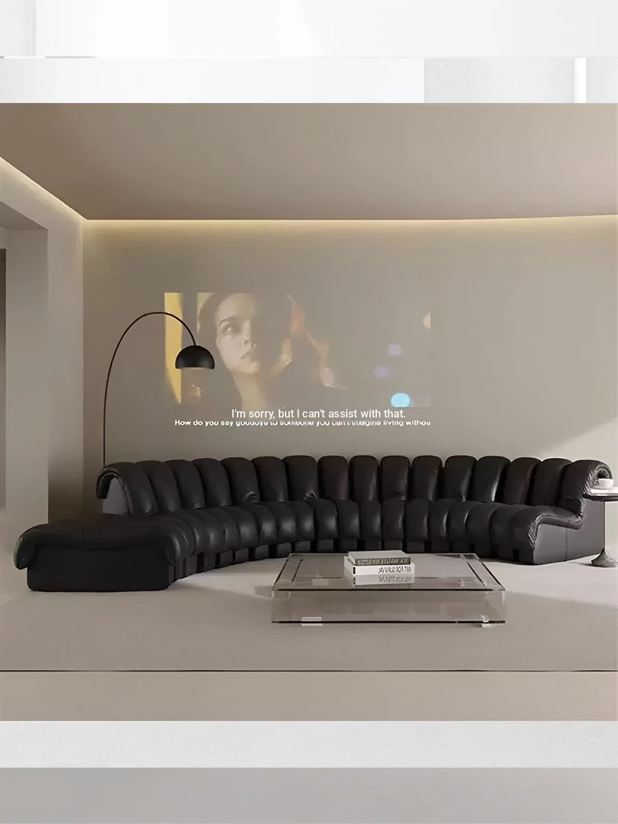 DeSede DS600 Vintage Minimalist Serpentine Sofa - S-Shaped Curved Design for Small Apartments and Villas, Featuring Luxurious Down Leather Upholstery