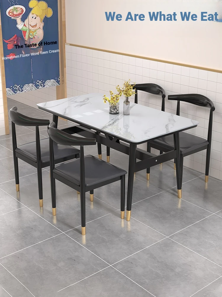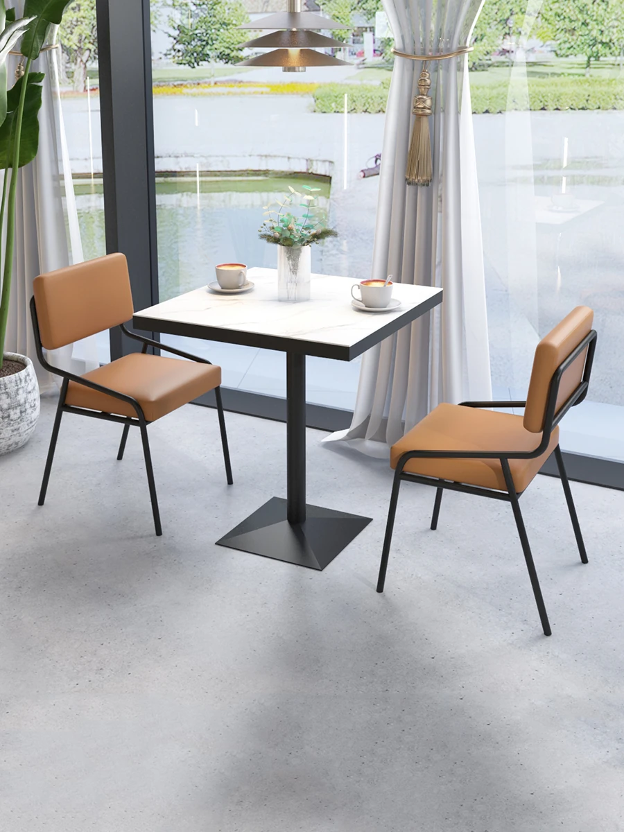 Modern Minimalist Square Ceramic Dining Table - Perfect for Cafés and Tea Shops, Ideal for Meetings and Gatherings, Stylish and Functional Furniture Set 1422