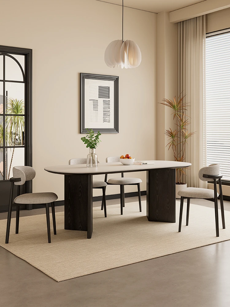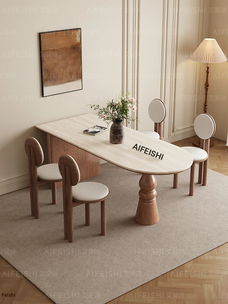 French Luxury Solid Wood Dining Table - Modern Minimalist Designer Drop-Shaped Dining Table with Stone Surface for Home, Elevate Your Dining Experience with Sophisticated Style