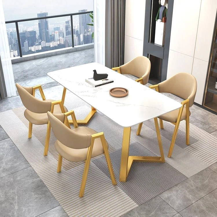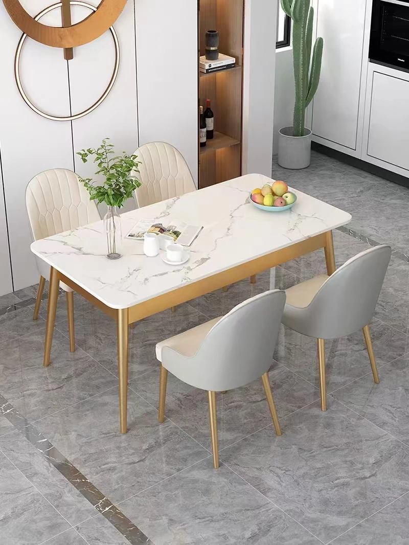 Nordic Style Marble Dining Table and Chair Set for Small Apartments - Modern Minimalist Luxury Rectangular Design for Home Use