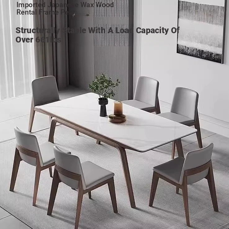 Modern Minimalist Solid Wood Dining Table Set for Small Spaces - Elegant and Easy-to-Use with Marble-Look Surface, Perfect for Family Meals