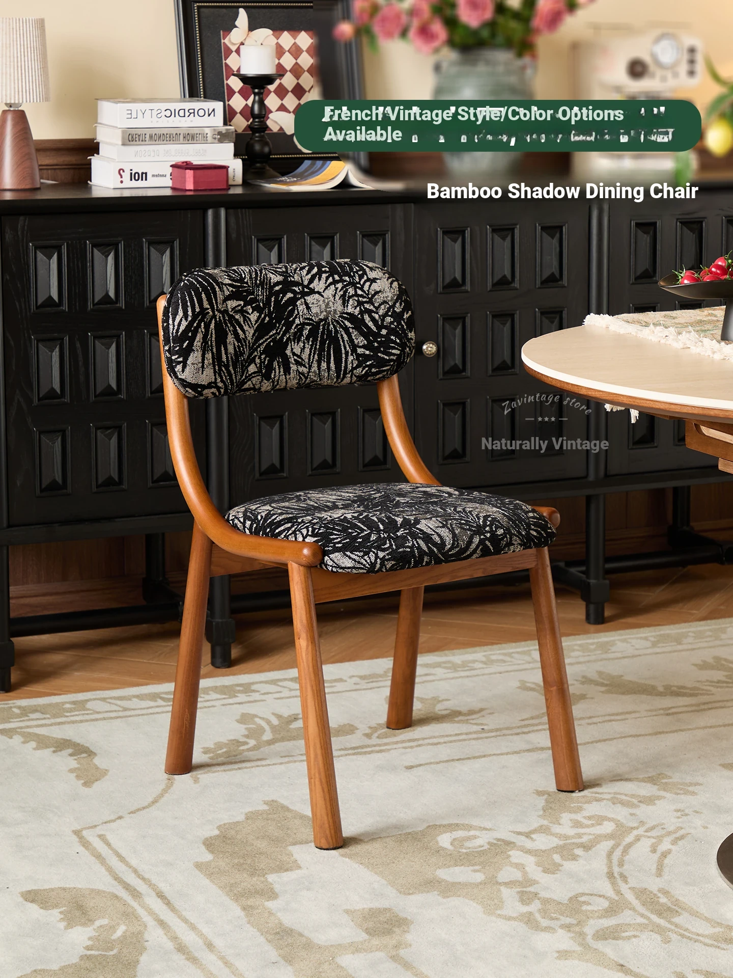 Vintage Bamboo Shadow Chair - French Antique Solid Wood Dining Chair with Soft Upholstered Backrest, Perfect for Home Use, Stylish Designer Leisure Chair