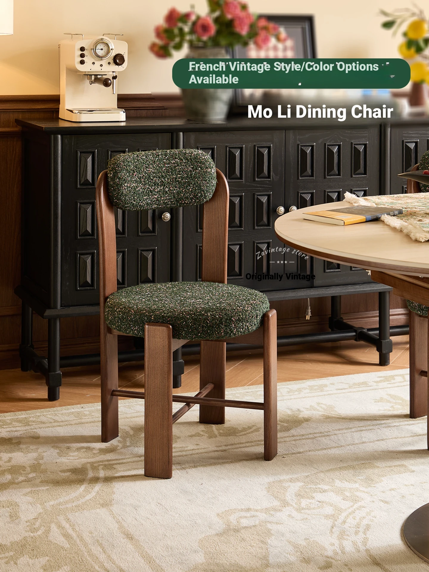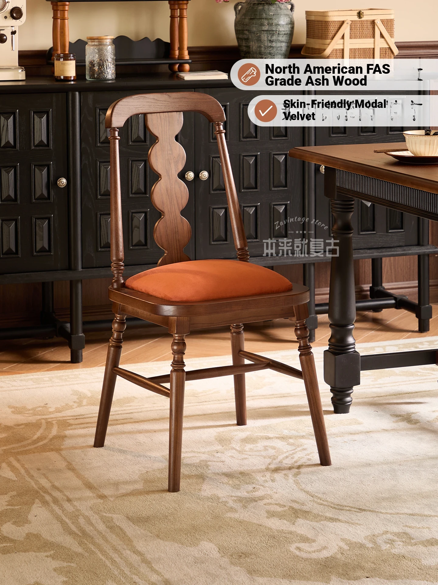 Vintage French-Style Solid Wood Dining Chair - Retro Design for Small Spaces, Perfect for Home Use, Adds Charm to Your Dining Area!
