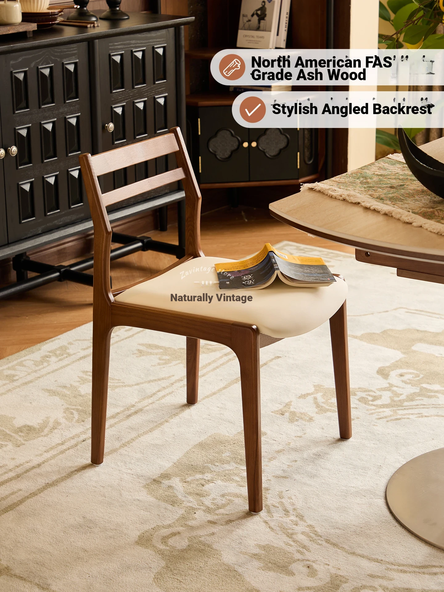 Retro Walker Chair - French Vintage Solid Wood Dining Chair with Soft Backrest, Perfect for Small Spaces