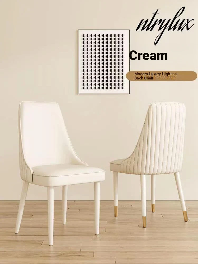 Creamy White French Dining Chair - Modern Minimalist Leather Stool for Small Spaces, Perfect for Dining or Makeup – Elevate Your Home Decor with Luxurious Comfort