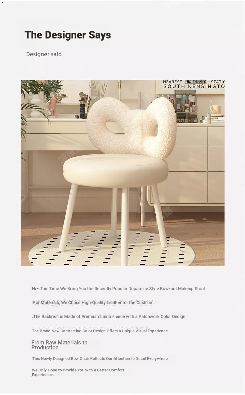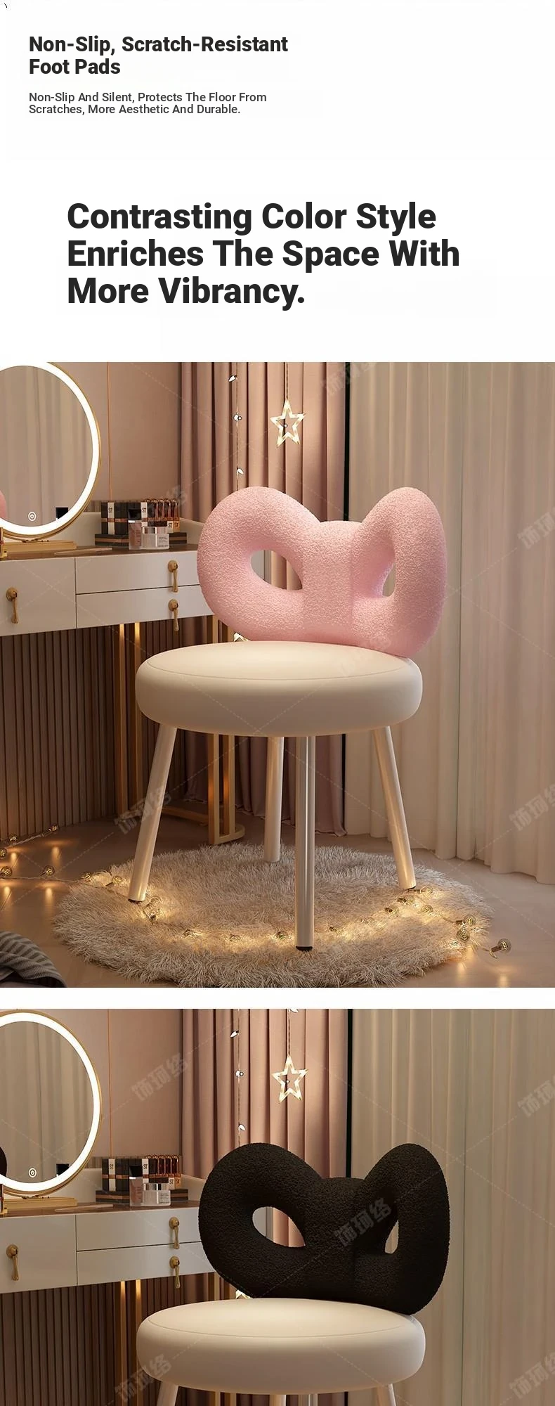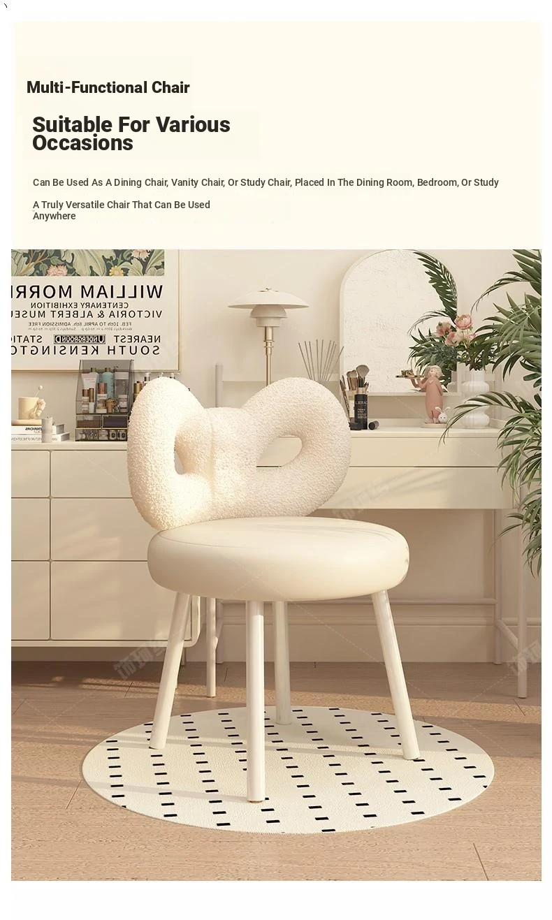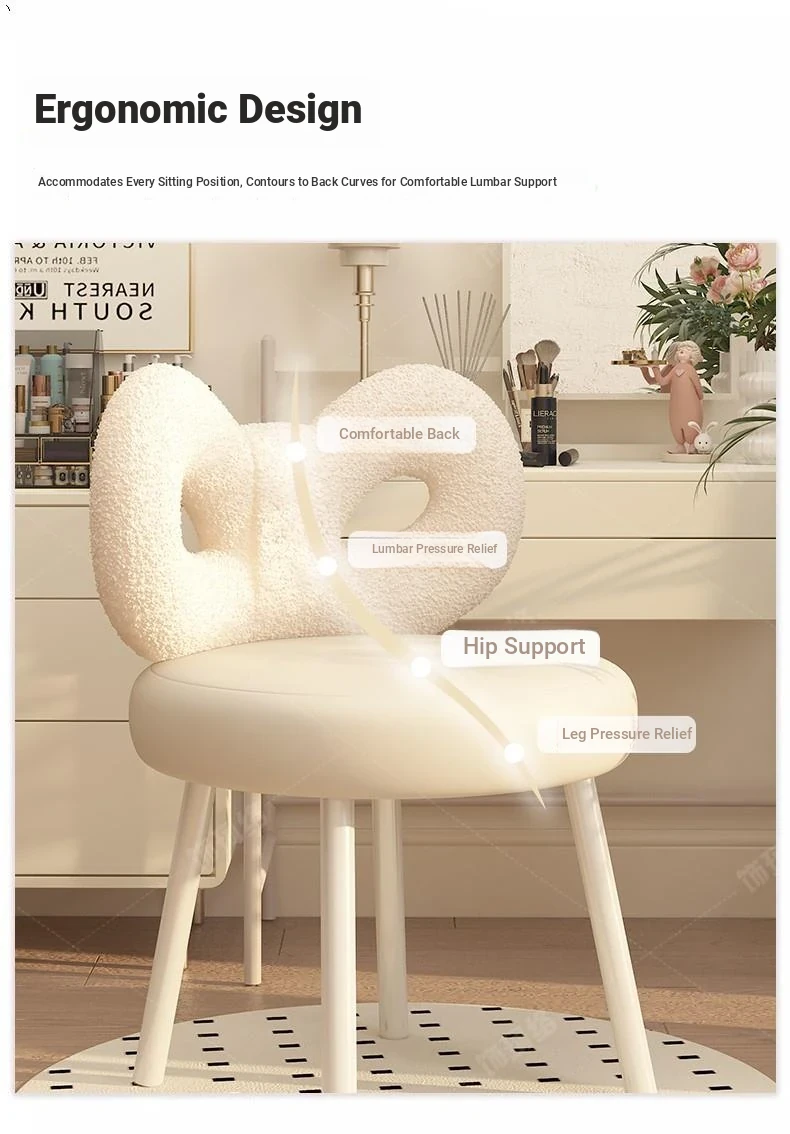 Elegant Makeup Chair for Home - Minimalist Butterfly Stool with Backrest, Perfect Vanity Seat for Girls' Bedrooms, Trendy Design for Nail Art and Beauty Routine.