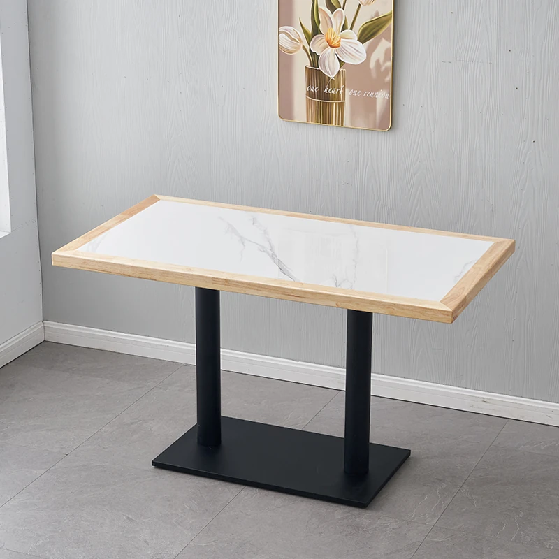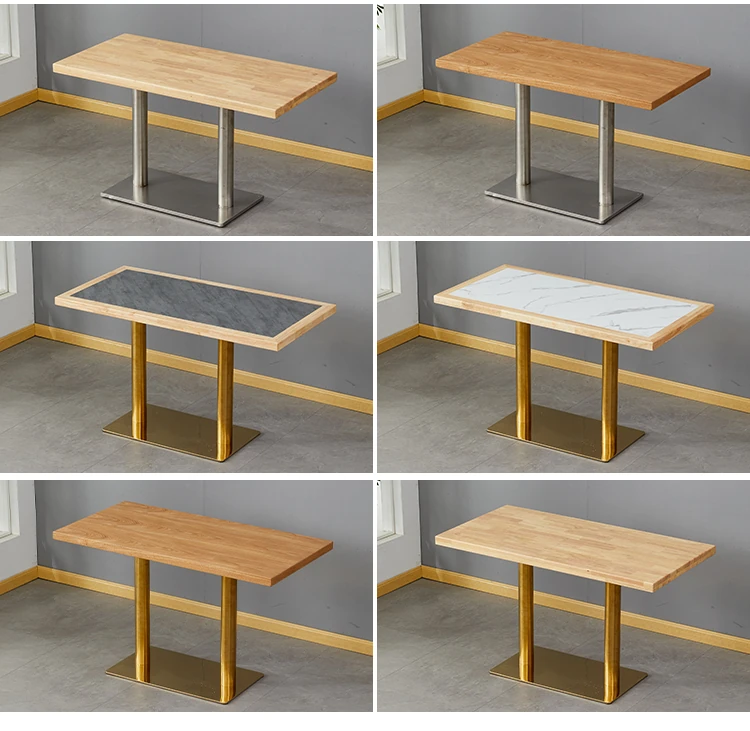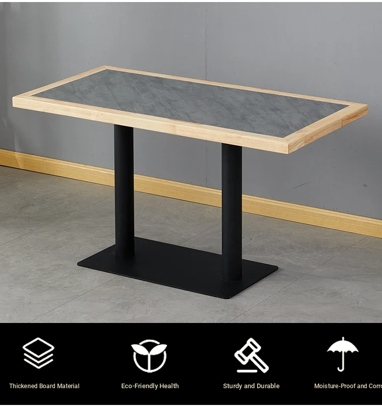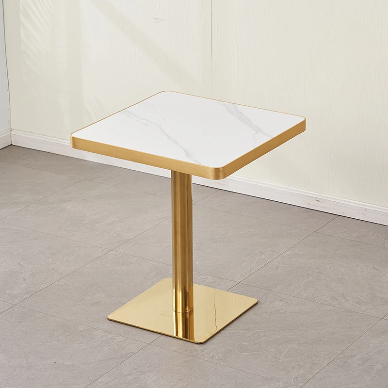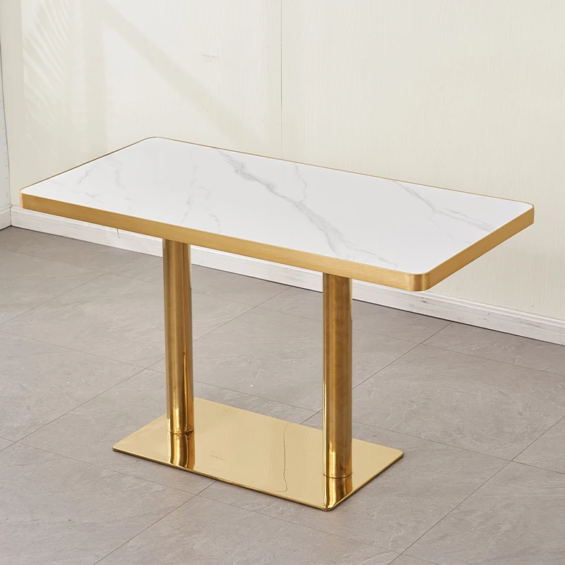 Elegant Titanium Gold Rectangular Dining Table - Trending Café Dessert Shop & Bar Counter Design with Faux Rock Panel, Perfect for Hot Pot and Modern Aesthetics. Ideal for Creating a Chic Ambiance in Your Space!
