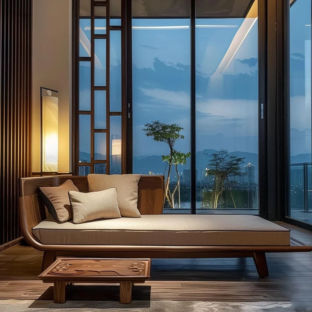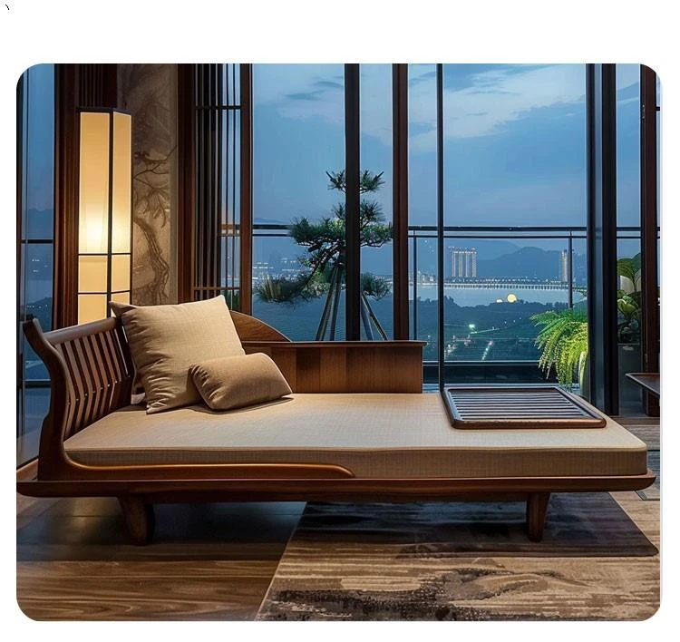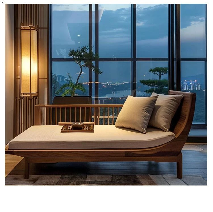 Elegant Zen-Style Black Walnut and Ash Wood Chaise Lounge - Perfect for Living Rooms, Hotels, B&Bs, and Offices - A Touch of Serenity and Luxury