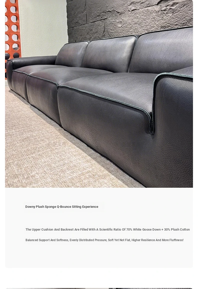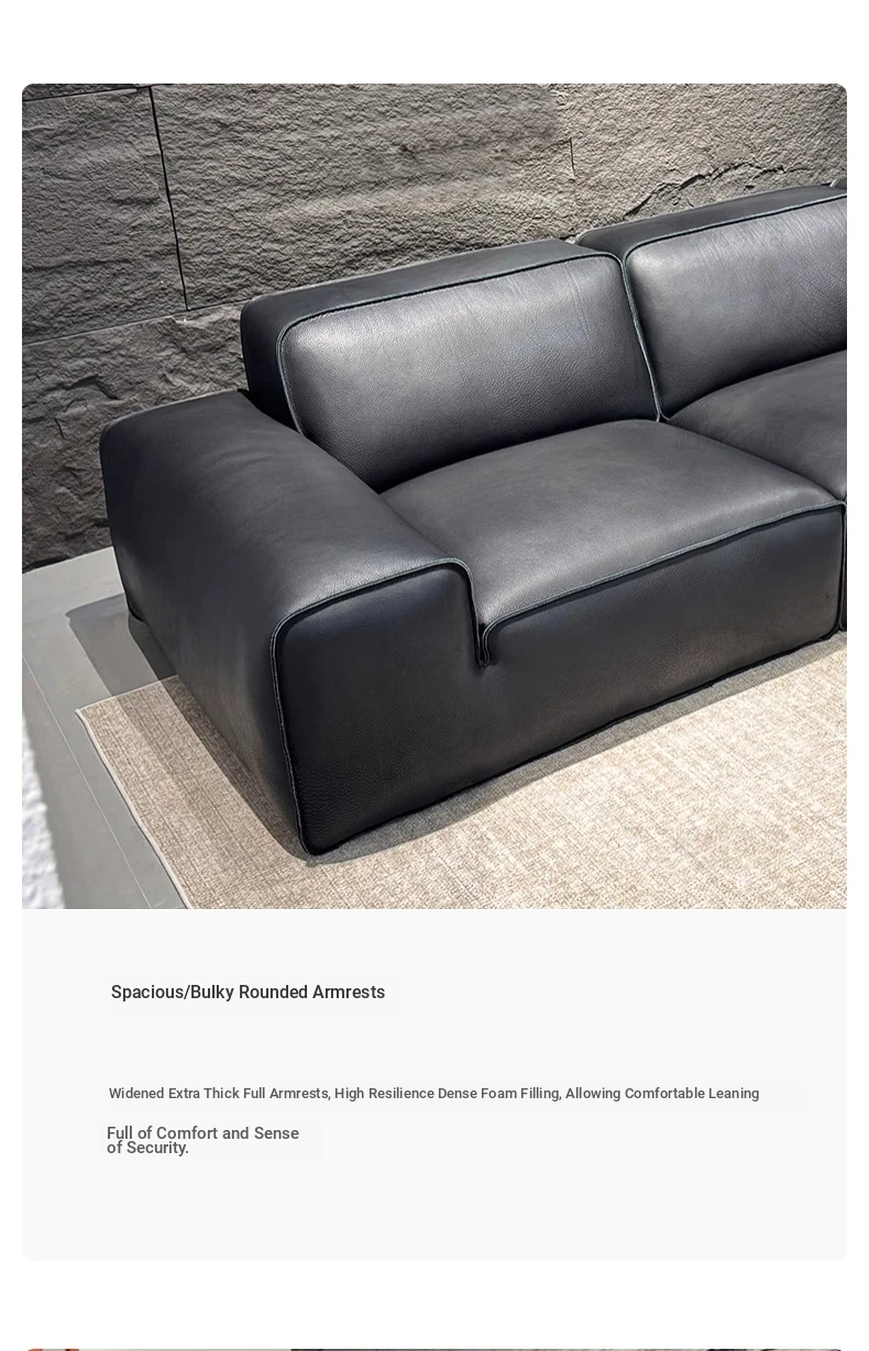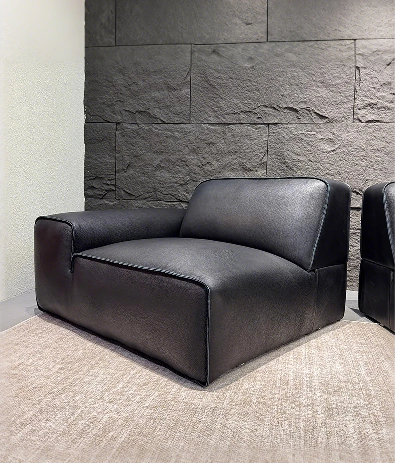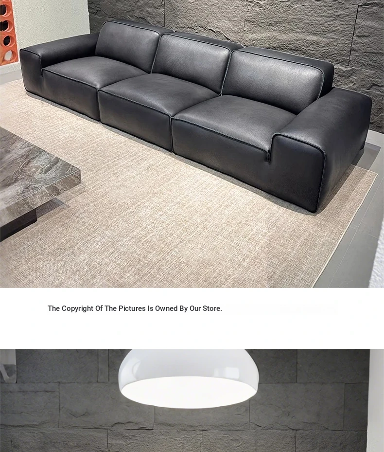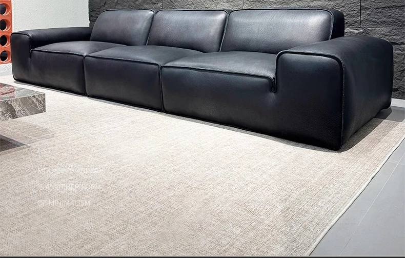 Luxury Italian Minimalist Leather Sofa Set - Full Grain, Semi-Aniline, and Top Grain Options for a Stylish Living Room. Experience Comfort and Elegance with Our Premium Quality Black Bull Sofa Collection.