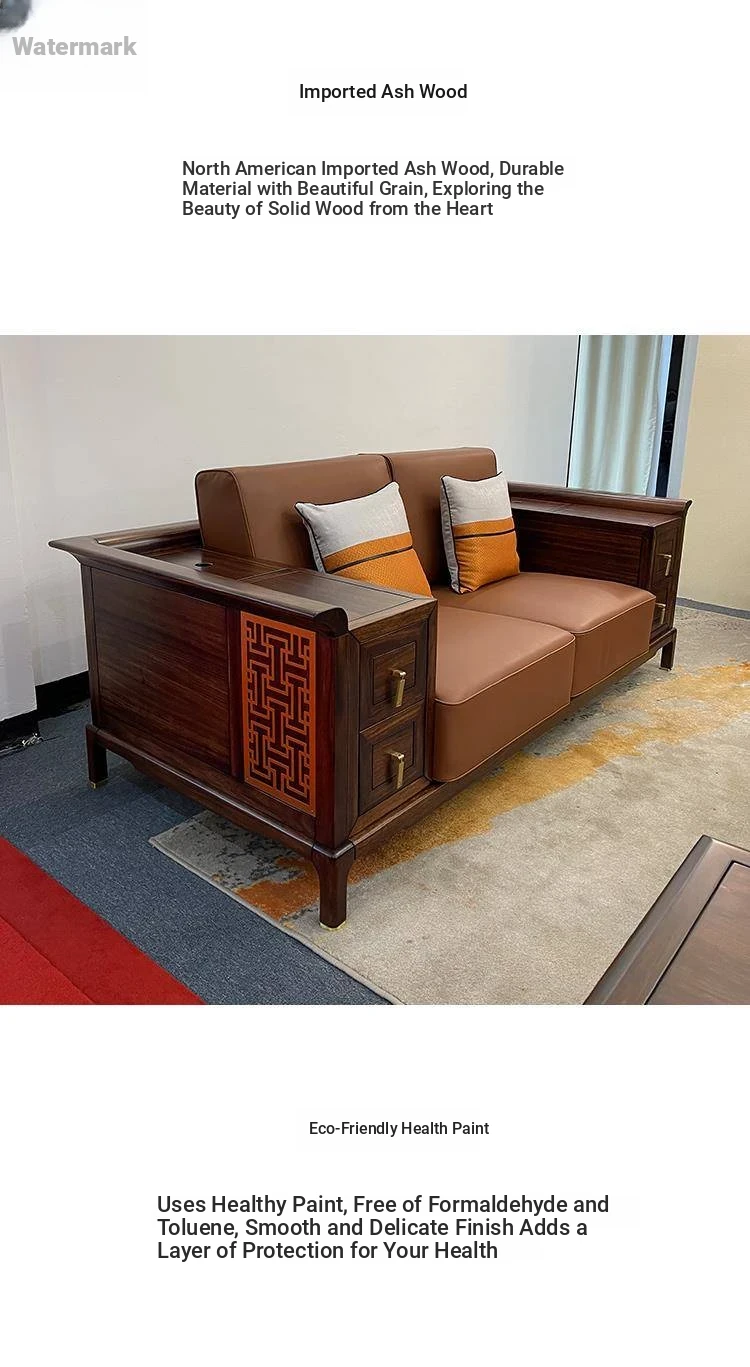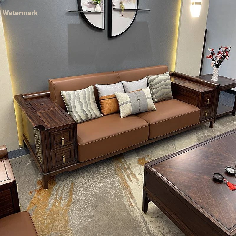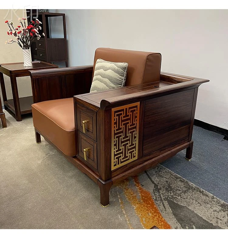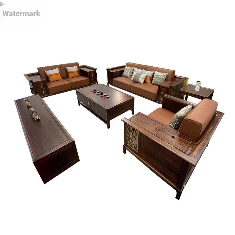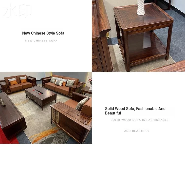 Modern Chinese Style Solid Black Wood Sofa Set - Elegant Minimalist Furniture for Villas and Spacious Apartments
