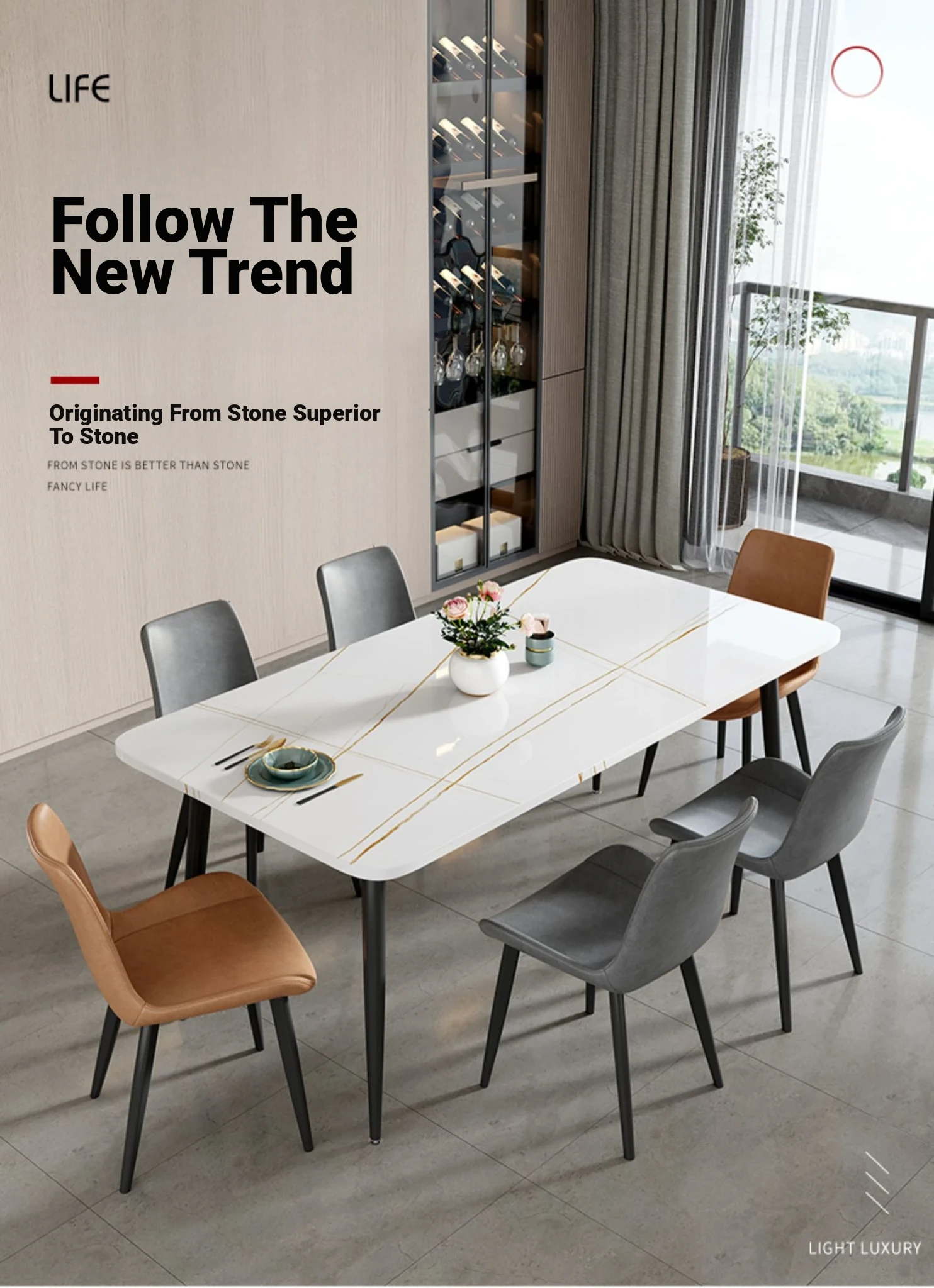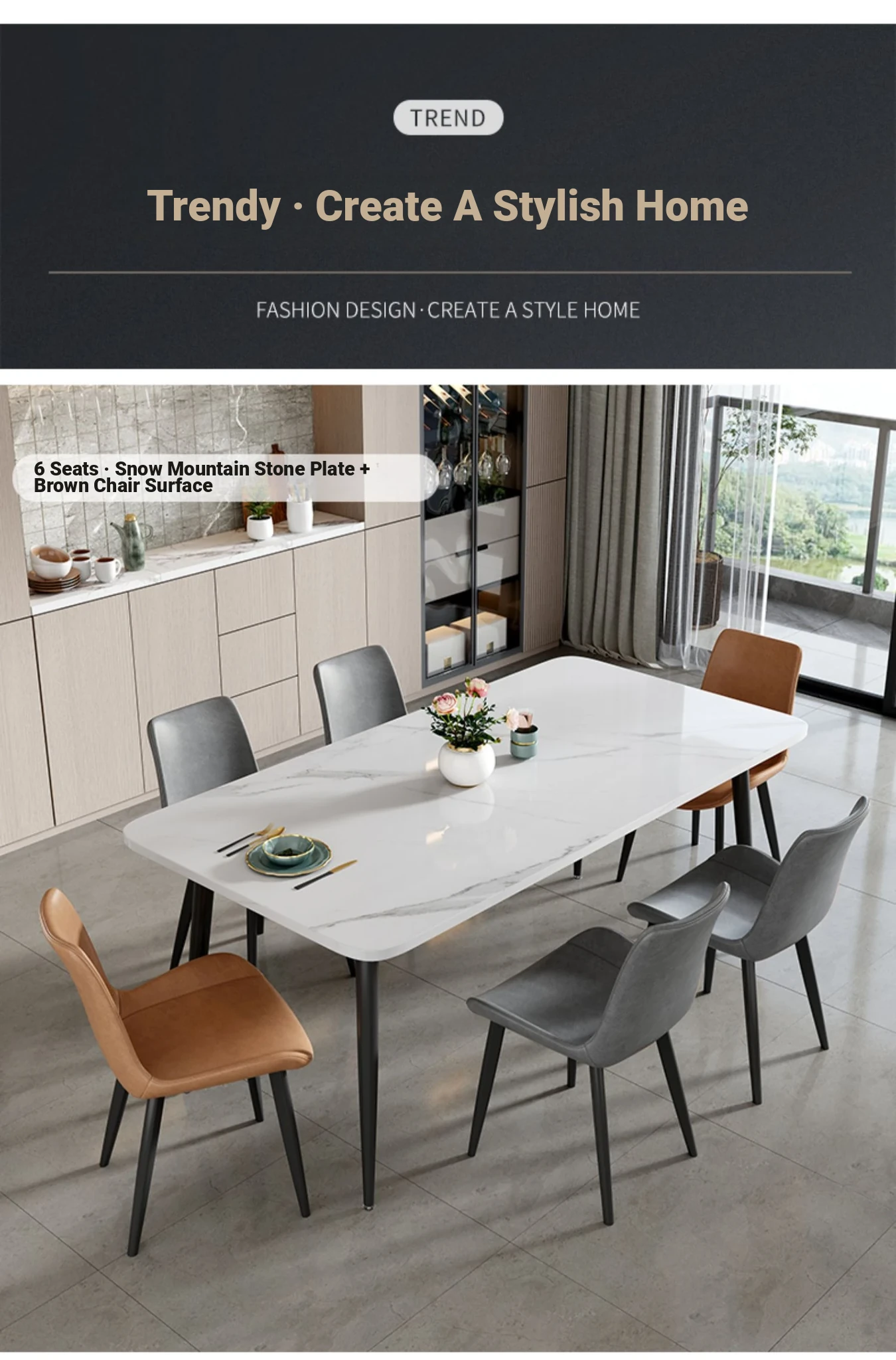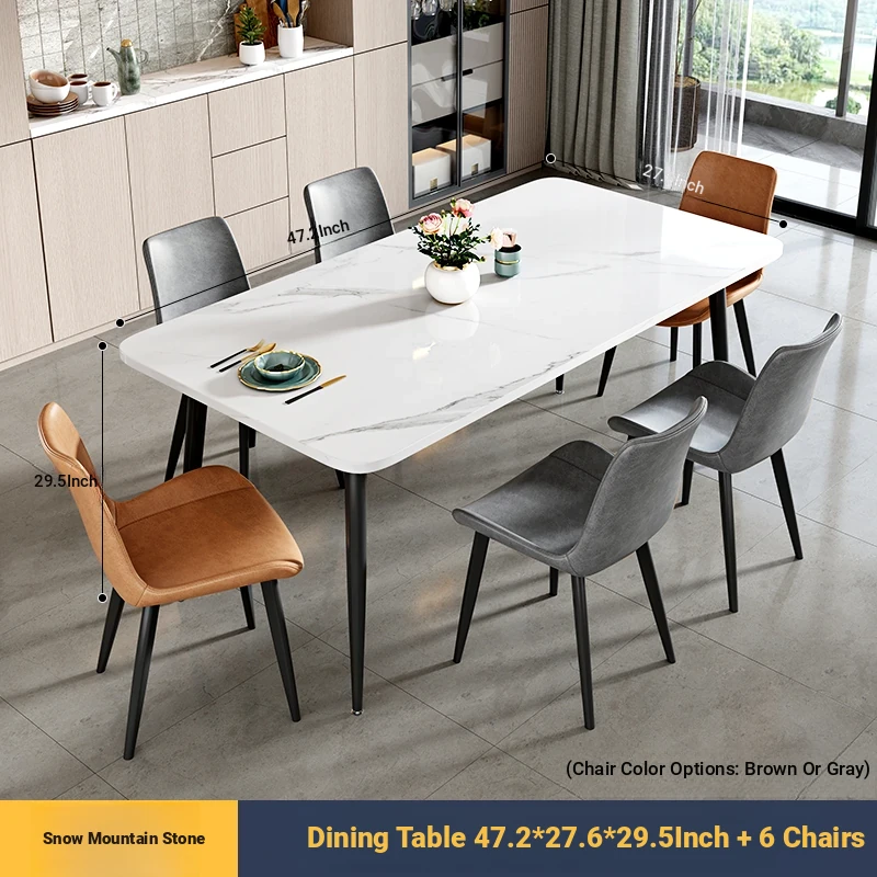 [Snow Mountain Stone] 47.24in*27.56in Rock Plate Dining Table +6 Chairs