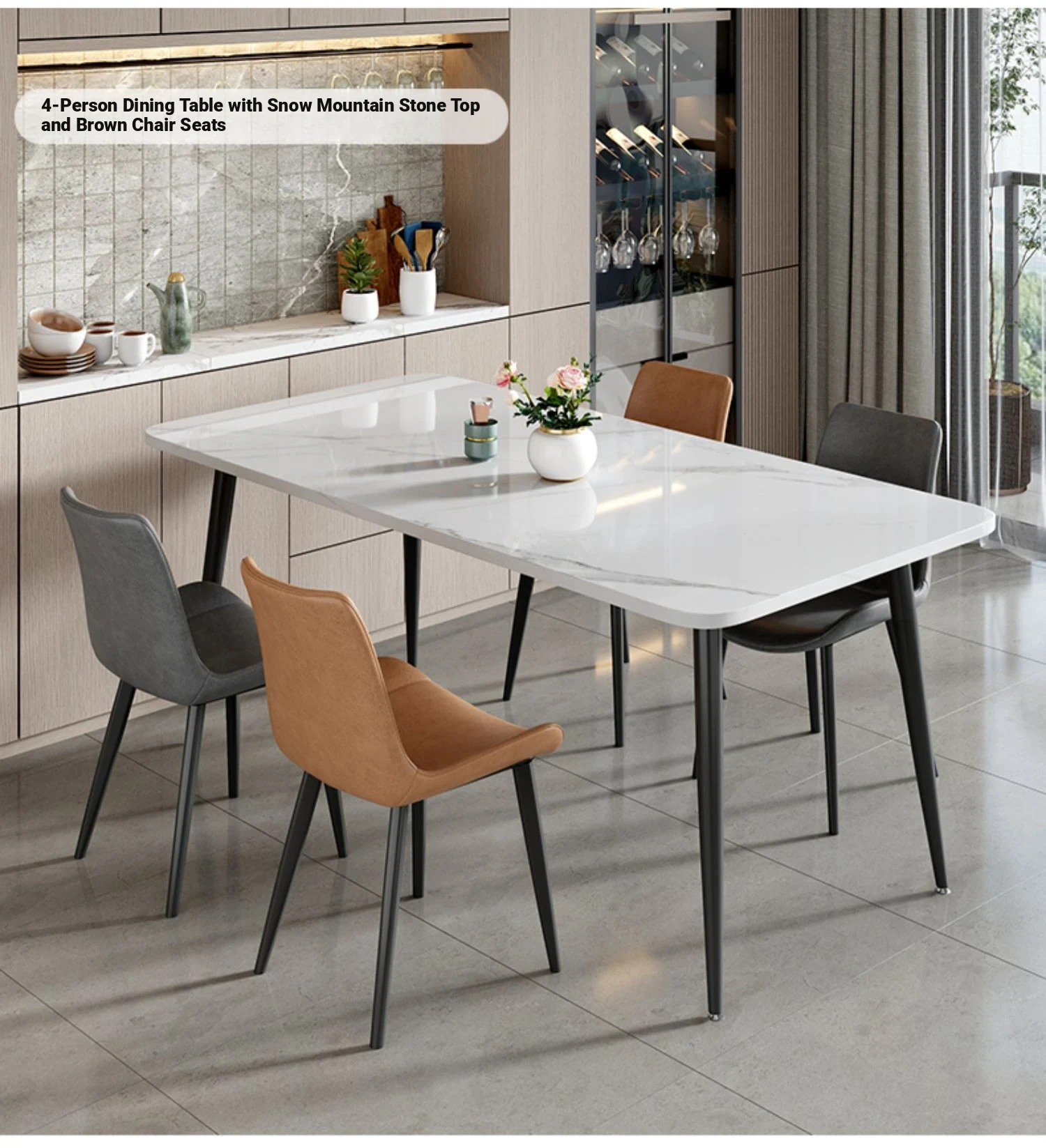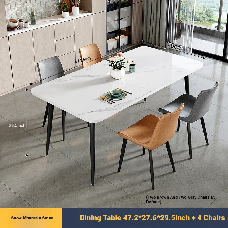 [Snow Mountain Stone] 47.24in*27.56in Rock Plate Dining Table +4 Chairs