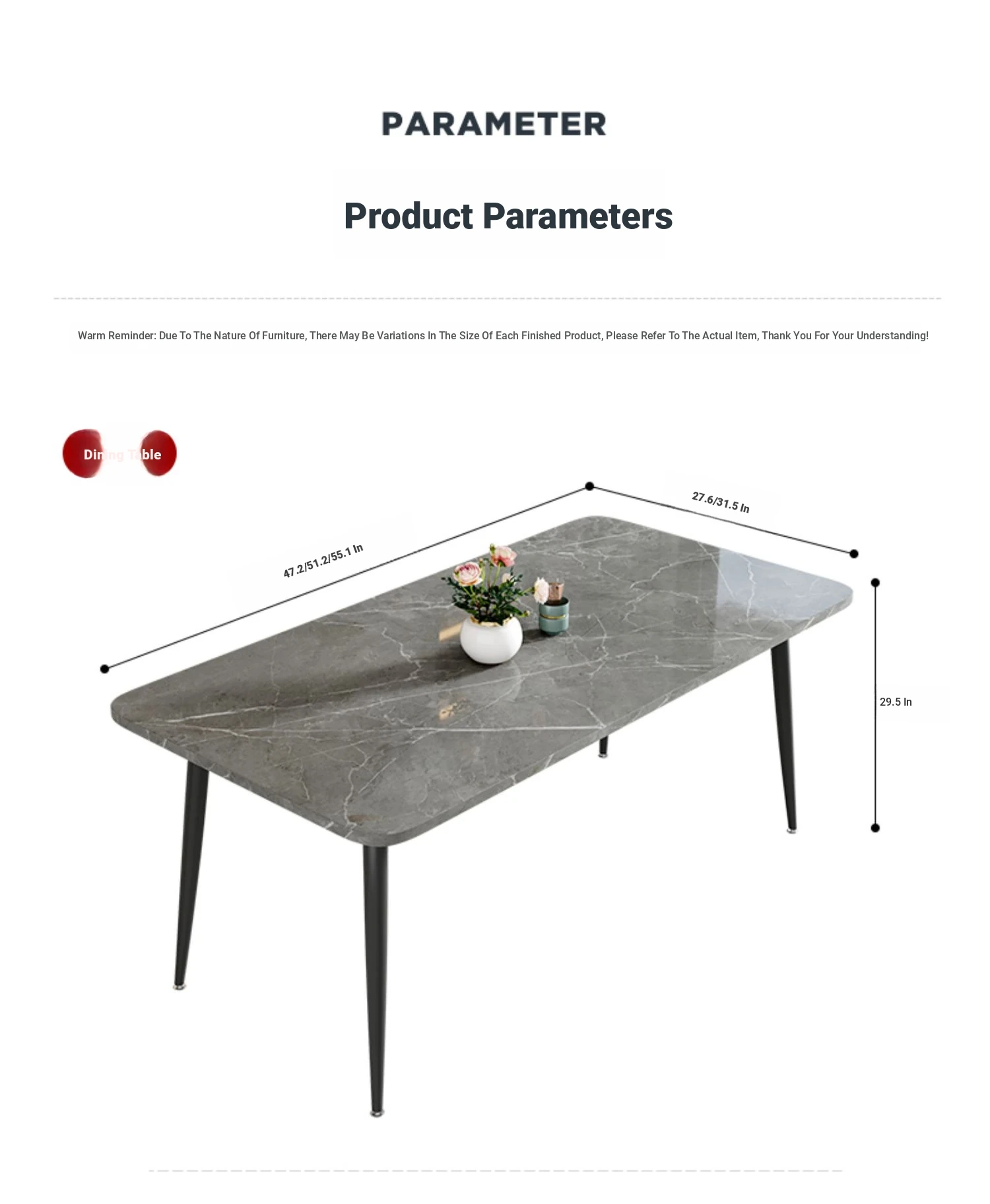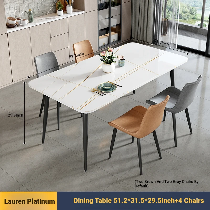 [Lauren Platinum] 47.24in*27.56in Rock Plate Dining Table +4 Chairs