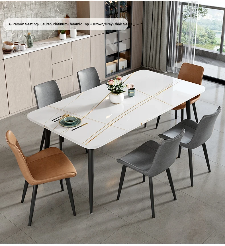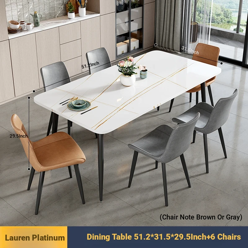 [Lauren Platinum] 47.24in*27.56in Rock Plate Dining Table +6 Chairs