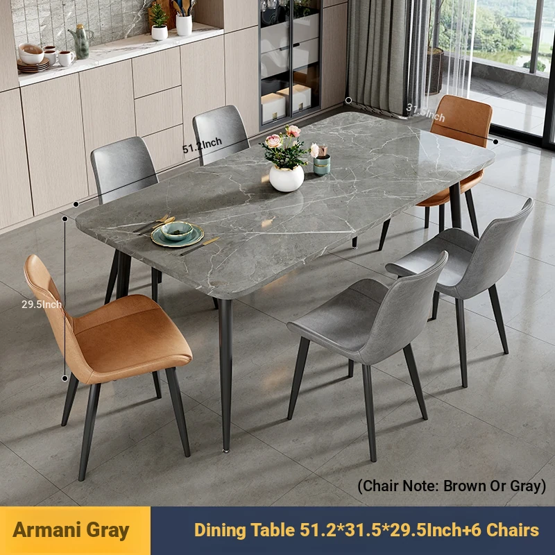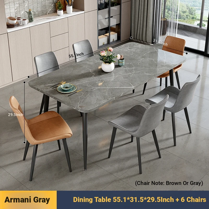 [Armani Grey] 55.12in*31.50in Rock Plate Dining Table +6 Chairs