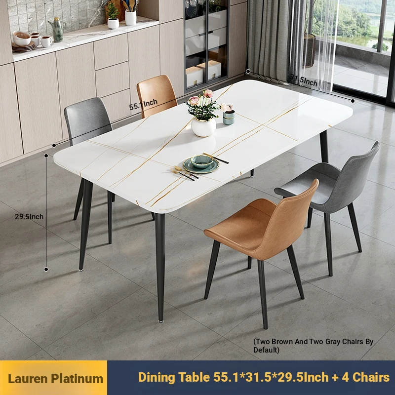 [Lauren Platinum] 55.12in*31.50in Rock Plate Dining Table +4 Chairs