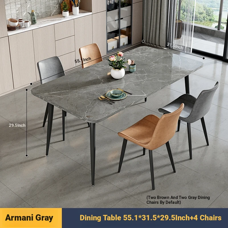 [Armani Grey] 55.12in*31.50in Rock Plate Dining Table +4 Chairs