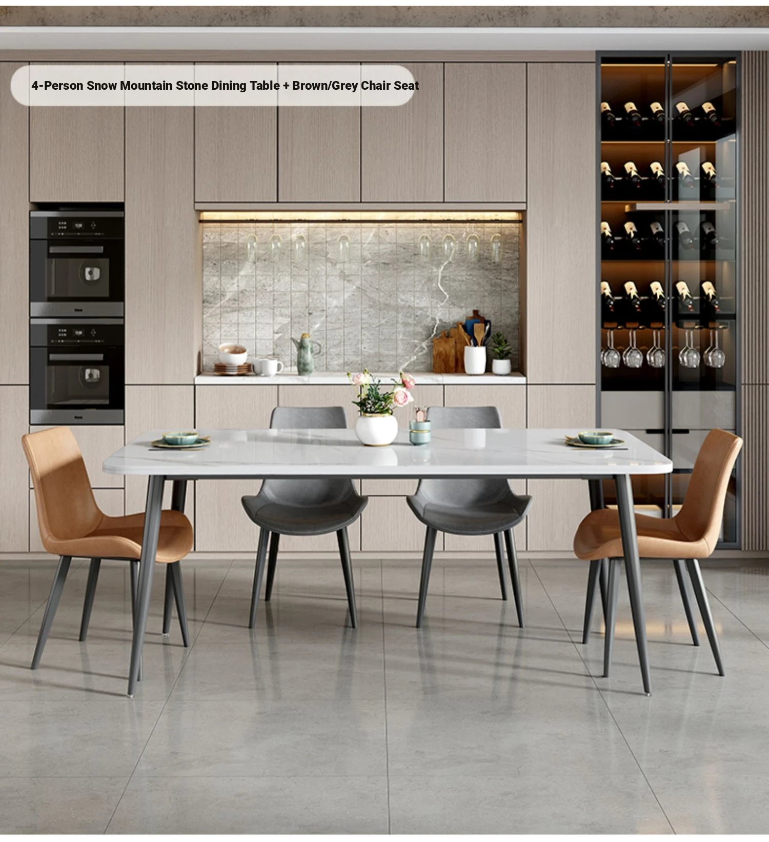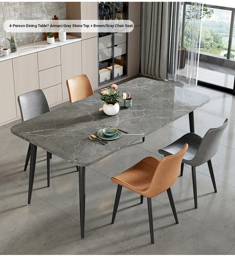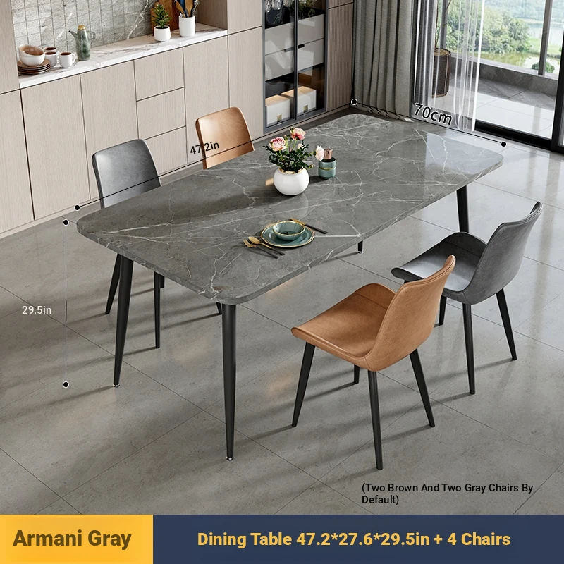 [Armani Grey] 47.24in*27.56in Rock Plate Dining Table +4 Chairs