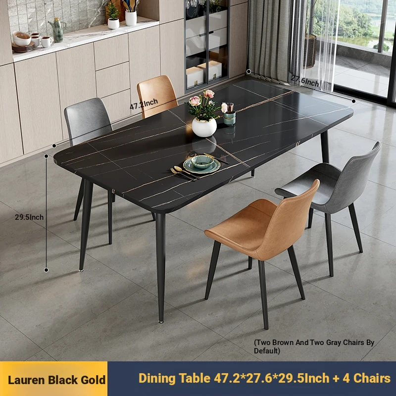 [Lauren Black Gold] 47.24in*27.56in Rock Plate Dining Table +4 Chairs
