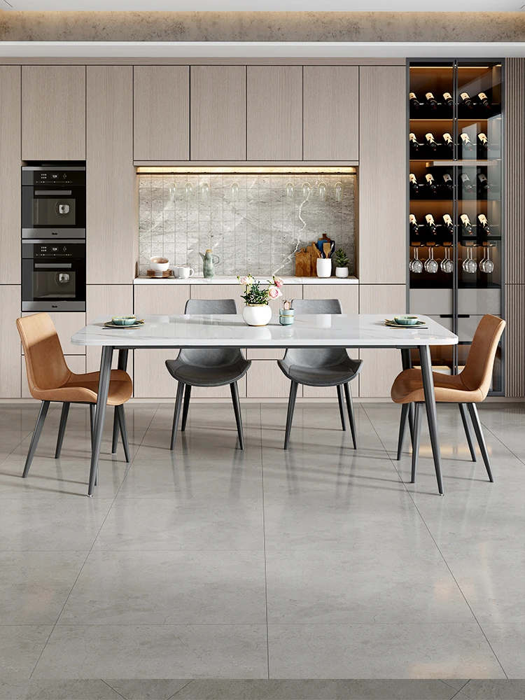 Modern Minimalist Rectangular Dining Table for Small Spaces – Natural Marble Dining Table for Living Room, Trendy Design Perfect for Family Meals