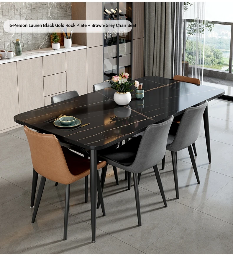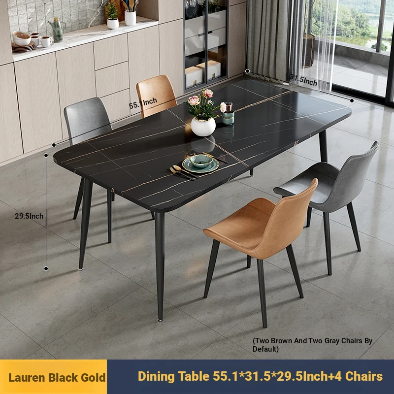 [Lauren Black Gold] 55.12in*31.50in Rock Plate Dining Table +4 Chairs