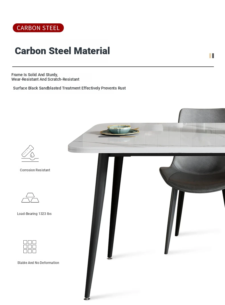 [Snow Mountain Stone] 55.12in*31.50in Rock Plate Dining Table +6 Chairs